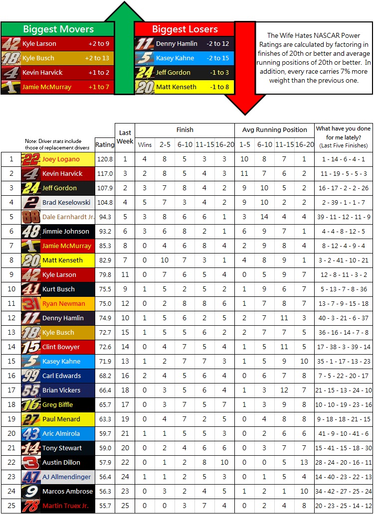 With the win, Logano increased his lead in the latest edition of NASCAR Power Rankings at The Wife Hates Sports.